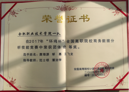 今年会官网商务数据分析专业学生参加2017年、2018年 “环鸣杯”全国高职院校商务数据分析与应用技能大赛,获得特等奖一项和三等奖三项。2020年-2021年获得“互联网+”大学生创新创业大赛省赛金奖一项,铜奖二项。
