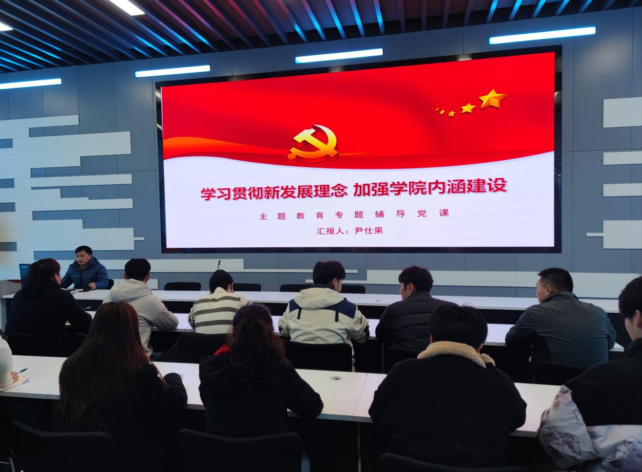 课堂上,尹仕果围绕“深刻理解新发展理念的丰富内涵,准确把握新发展的理论和实践价值,全面贯彻新发展理念的实践要求”三个方面进行讲述,教育引导全体党员要把握新发展理念的理论精髓,全面深刻认识创新、协调、绿色、开放、共享五大新发展理念的内在联系,他强调,学院的发展必须贯彻落实改革创新、协调永续、开放共享的理念。号召与会党员要树立忧患意识,以问题为导向,解决专业调整、专业群建设等问题,强化责任担当,攻坚克难,立足学院目前发展阶段、现实条件等,构建一个新发展格局。