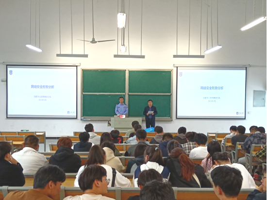 本次宣讲会由网络安全专家、副高级工程师、合肥市公安局网安支队唐珂警官主讲,21级、22级计算机网络技术专业全体学生参会学习。唐珂警官从认识《网络安全法》、学校师生安全上网、我们身边的网络安全威胁、认识黑客与网络攻击行为、防范网络电信诈骗等方面介绍了网络安全及其保护的相关知识,为师生提供了使用手机、电脑等常用电子设备的安全防护建议。