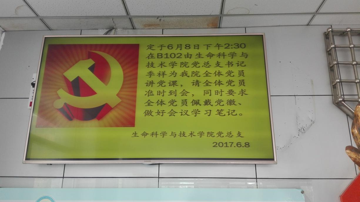 为及时将学习教育的各项活动通知到每一名党员,建立了一个“yL23411永利官网登录教工支部”微信群,有活动或通知及时在群里发布,党员也可以在群里进行学习讨论,交流学习心得,为党员交流零距离“两学一做”学习教育提供了一个学习交流的平台。该支部微信群丰富了党员的学习交流形式,实现了党员交流“零距离”,各项活动得到积极响应,支部的凝聚力得到了进一步提升。教工党支部还通过学院大门处的电子屏幕发布一些即时信息,使党支部更便于开展各项活动。