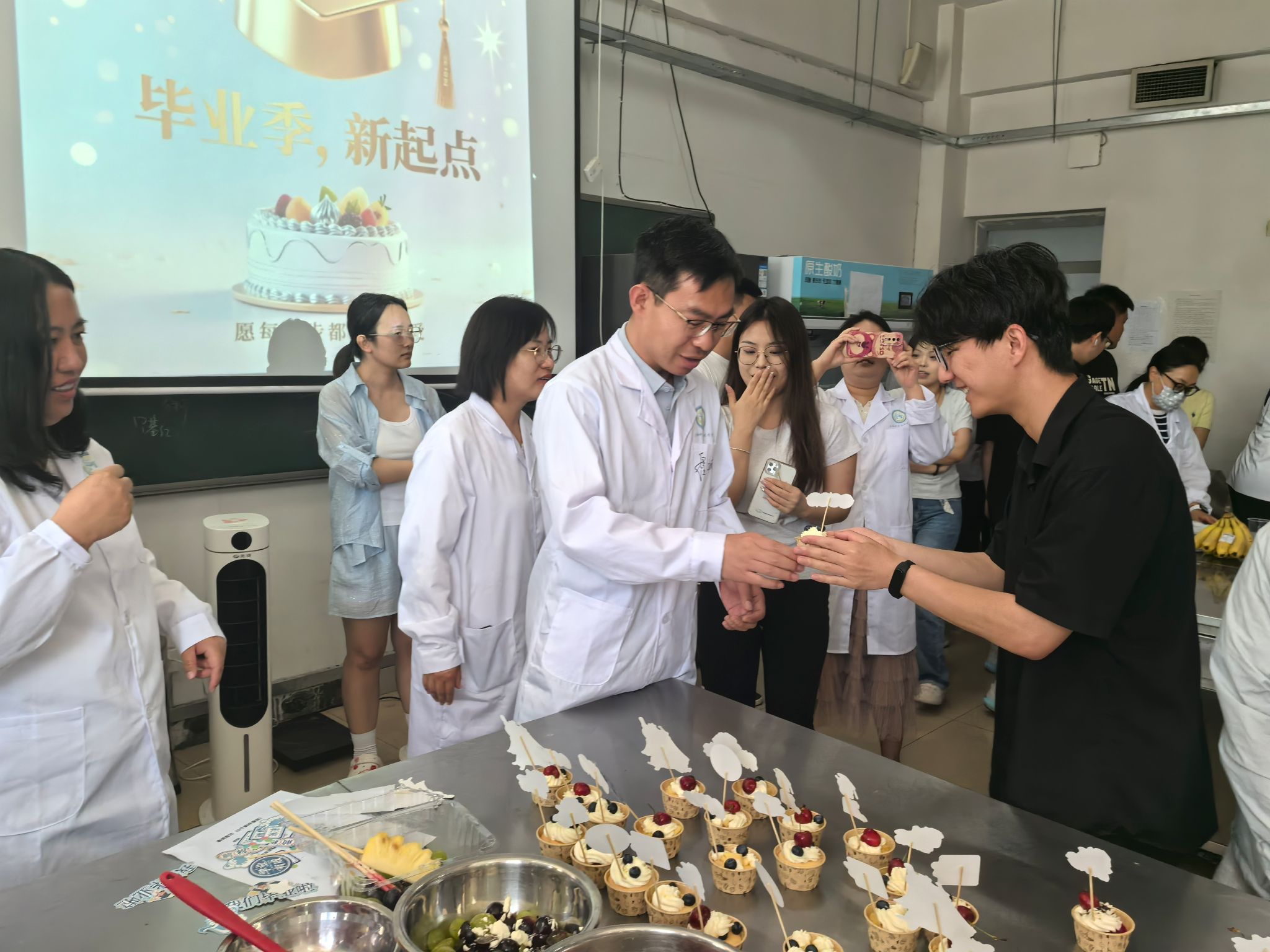 此次主题党日活动,是食品科学与工程系教工党支部坚持立德树人根本任务,践行“为国育人、为党育才”使命的生动实践。小小的蛋糕承载着深厚的师生情谊和学院对毕业生的殷切期望,激励着学子们带着这份温暖与力量,在未来的征程中奋勇前行,贡献青春力量。