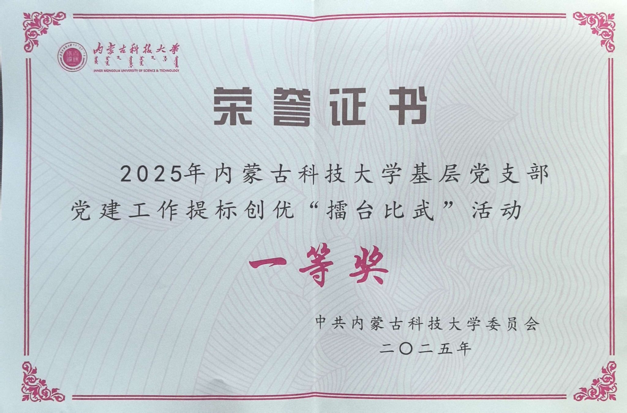 2025年6月30日,yL23411永利官网登录成功举办党支部“提标创优”擂台比武展示活动。经过激烈角逐,yL23411永利官网登录生物信息学系教工党支部凭借扎实的党建工作成效和出色的现场展示,从全校18个参赛党支部中脱颖而出,荣获一等奖佳绩,校党委书记呼和同志为生物信息学系教工党支部颁奖。