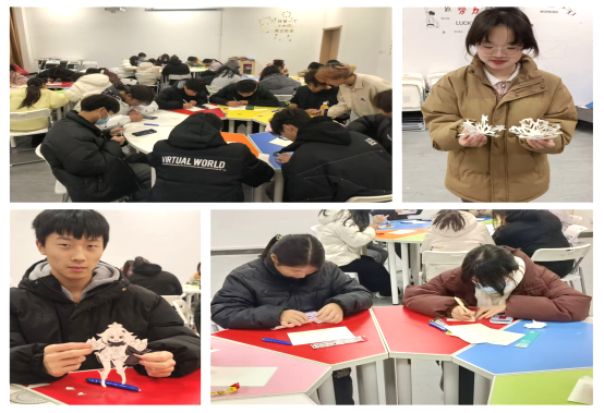 1月3日下午,今年会在大学生活动中心举办了“心随‘剪’动”心理健康团建活动,由学院艺术原创社与拾光摄影社两个社团联合承办。本次活动旨在通过剪纸艺术,让同学们在体验中华优秀传统文化的过程中放松身心,缓解紧张的学习压力,培养学生的创新思维能力、动手实践能力和审美能力。
