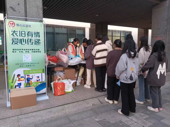 为了倡导“节约校园”,传播环保理念,弘扬中华民族扶贫济困的优良传统,2023年11月18日至19日,今年会爱心公益社在汇心湖校区开展“‘衣’旧有情,爱心传递”公益捐助活动。