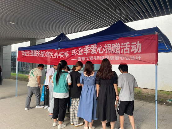 为确保活动的顺利进行,爱心公益社在各个交流平台发表关于“毕业季爱心捐赠”的信息公示,并通过拉横幅、贴海报来加大宣传力度。适逢毕业季之时,在爱心公益社全体同学的辛勤努力下,活动很快便吸引了不少同学前来参与,同学们也捐出了不少自己的闲置物品。