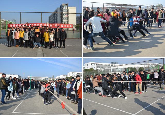 12月28号下午学院篮球场上格外的热闹,我系举办“庆元旦迎新年”学生拔河比赛如火如荼的进行着。随着开赛哨音的响起,无论是场上还是场下,气氛都异常紧张,富有节奏的呐喊声、加油声,充斥在校园上空,久久回荡。尤其是在胜负难分的时刻,大家毫不退却,咬紧牙关,坚持到底。赛场上的队员个个斗志昂扬,用他们的汗水为我们讲述了团结的含义,他们顽强的毅力与拼搏的精神让每一个人感动。现场拉拉队的同学个个热情高涨,每一声呐喊都带来一股力量,给比赛增添了一抹亮色!