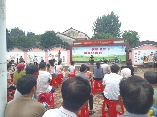 7月15日,青春献礼团队送文艺汇演登上唐畈村乡村大舞台。在慷慨激昂的歌曲《龙的传人》节目表演之后,舞蹈《彩云中华》和《大鱼》展现了新时代大学生积极向上的精神风貌和对美好生活的热爱与追求,相声《反诈大使》和小品《担保风波》以生动形象的表演向村民们科普宣传反诈知识,古筝《又唱浏阳河》和诗朗诵《诗意中国》则深情地表达了对祖国的热爱与祝福…一系列丰富多彩的文艺节目,不仅给村民们带来了欢乐与陪伴,更丰富了村民们的精神文化生活。活动现场气氛热烈,喝彩声不断。