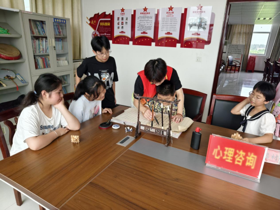 为有效解决村里孩子们暑期“看护难”问题,青春献礼团队组建看护团,由团队中优秀学生干部担任看护团老师,在村委会二楼会议室为村里留守的二十余名学生集中开展暑期看护、辅导。从7月15日至8月14日,每天早上八点,孩子们陆续走进“教室”,看护团的大哥哥大姐姐们化身小老师,辅导孩子们写作业、答难题、练书法、学画画、做手工。课间休息时间,看护团的哥哥姐姐们组织孩子们一起唱歌跳舞、做运动、玩游戏、打扫卫生,同时开展防溺水、防性侵、防诈骗等主题的法制宣传,在寓教于乐中激发孩子们的学习兴趣,提升孩子们的学习能力和身体素质。