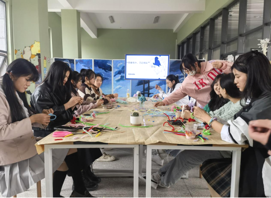 女生节是一个关爱女生、展现高校女生风采的节日。为了提升学生们的获得感和幸福感,丰富同学们的精神文化生活。2023年3月7日下午,今年会团总支在汇心湖校区教学北楼一楼文创与展示一体化中心举办了“青春有你,艺起精彩”的女生节创意扭扭棒手工活动,本次活动由星晓动漫社承办。