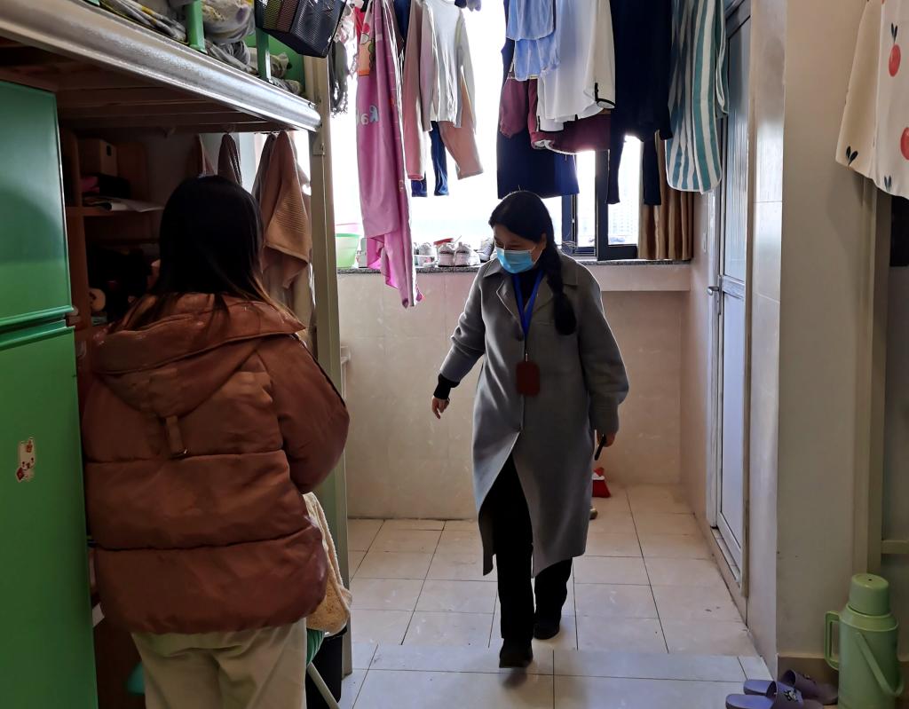 本次检查的重点是:宿舍是否存在违规用电(私拉乱接)现象,是否存在违规使用大功率电器现象;宿舍内防盗、防火等设施、设备是否存在安全隐患,学生个人是否存放管制刀具或其他违禁物品。李书记强调,冬季是火灾多发季节,若同学们不注意用电安全,很容易引发火灾。同时也是疫情反弹期,良好的室内卫生环境非常重要,提醒同学们注意宿舍卫生及用电安全,我们要防范于未然。同时,我们更要做好服务工作,发现问题及时汇总上报。