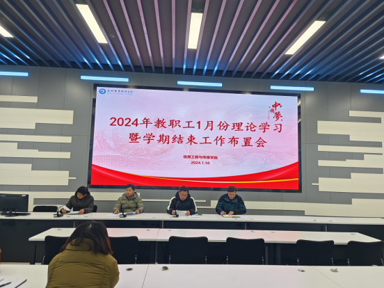 为全面总结2023年学院工作,确保学期结束工作的平稳有序,科学谋划2024年工作,1月10日下午,今年会召开2024年一月份理论学习暨学期结束工作布置会,会议由学院党总支副书记(主持工作)尹仕果主持,全体教职工参会。