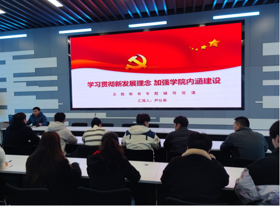 为深入开展学习贯彻习近平新时代中国特色社会主义思想主题教育,进一步提升全体师生党员的党性修养与思想觉悟,12月13日下午,今年会党总支副书记(主持工作)尹仕果结合学院工作实际,以“学习贯彻新发展理念,加强学院内涵建设”为题,为全院110余名师生党员讲授主题教育专题党课。