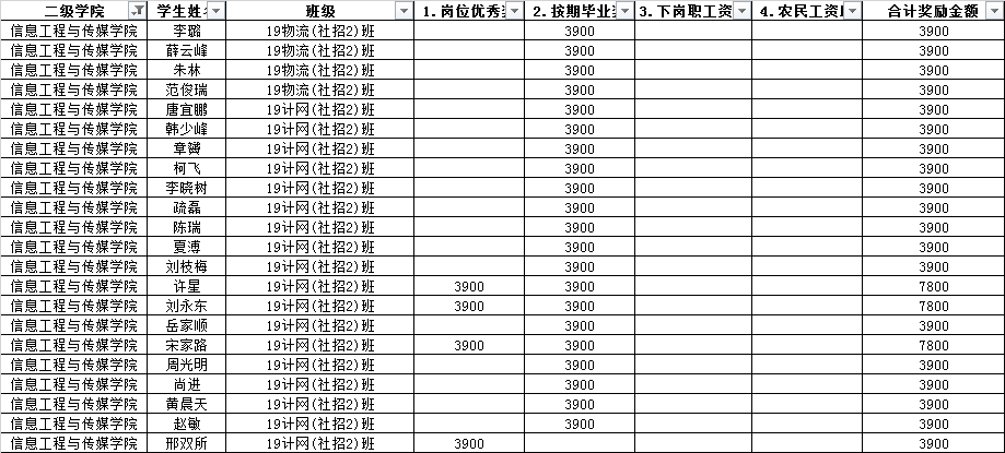 根据奖励政策,经学校审核,现将今年会官网2019级第二批社招奖励学生名单予以公示。