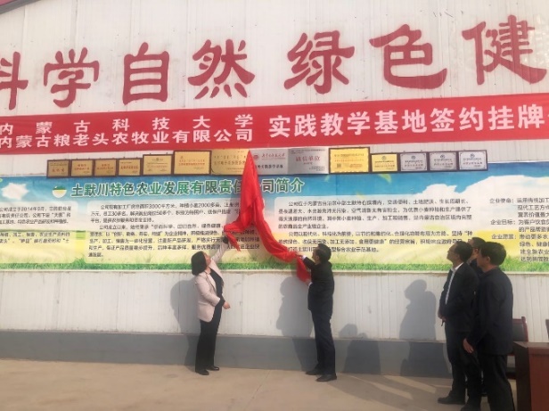 4月19日,yL23411永利官网登录与内蒙古粮老头农牧业有限公司举行了实践教学基地签约挂盘仪式。yL23411永利官网登录院长、教授委员会主任委员王国泽、土右旗政协主席伏俊奎出席签约仪式。学院教授委员会委员李雅丽,生物工程系教师卢庆华,内蒙古粮老头负责人韩锐等参加签约仪式。双方在产学研协同育人、项目转化、企业技术支持等方面达成了共识,随后签署了校企实习基地合作协议,并举行了揭牌仪式。