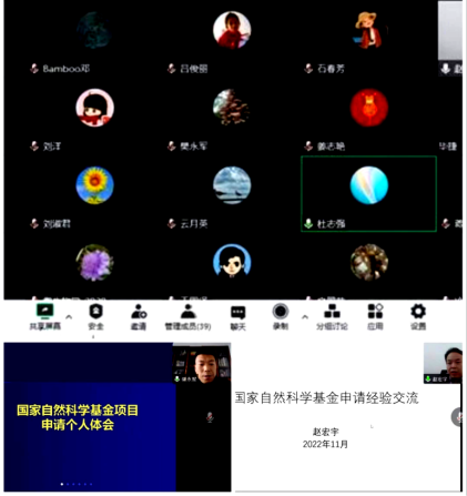 为了进一步提升永利官网教师科研能力,认真落实学院“十四五”规划的重点任务,学院于2022年11月3日14:30利用腾讯会议召开了“2023年度国家自然科学基金项目申报线上交流会”,参加本次会议的教师包括学院党政领导、科研团队负责人以及青年教师40余人。