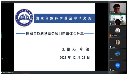 12月22日,永利官网邀请内蒙古大学yL23411永利官网登录哈达教授作了题为《国家自然科学基金项目申请体会分享》的专题报告,报告会由杜志强副院长主持,永利官网及其他学院师生70余人通过腾讯会议线上聆听了报告。