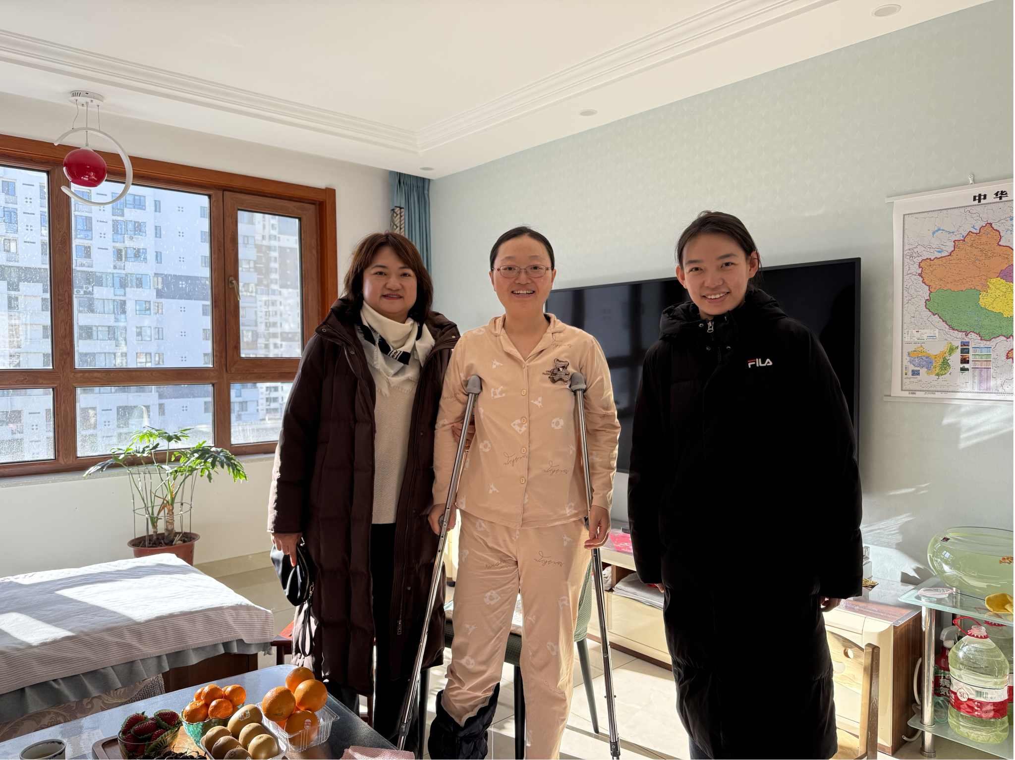 12月30日,学院党委书记李德超,生物技术系副主任、党支部书记张彤,工会委员刘国君对因工伤在家康复治疗的毕捷老师进行家访慰问,并送上关怀和温暖。