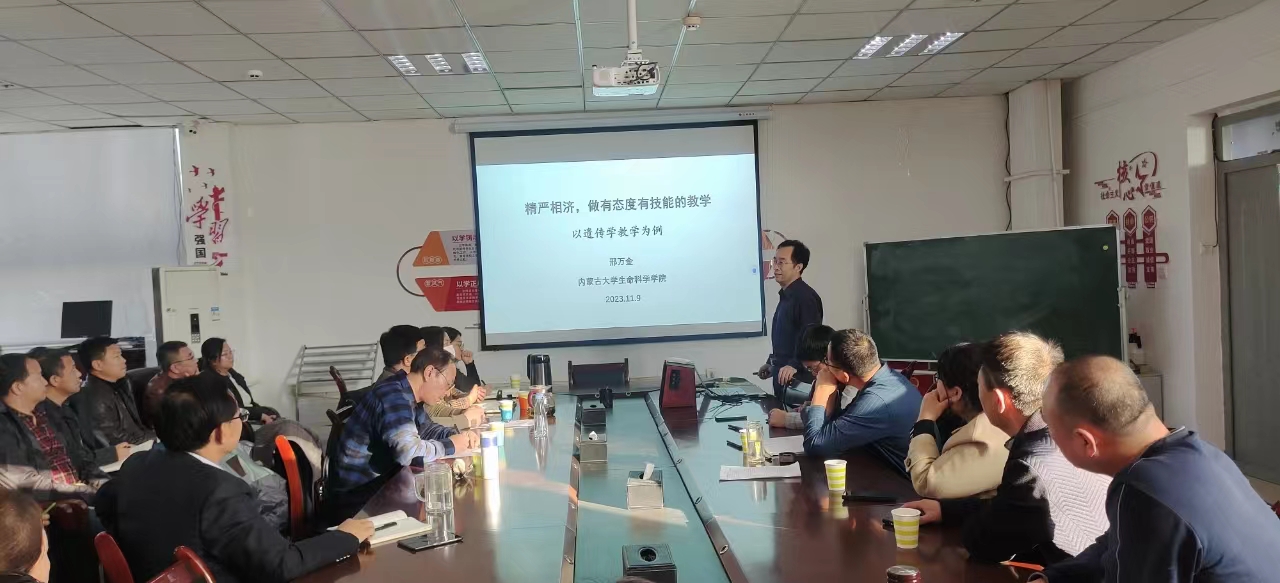 结合学校期中教学检查以及科研项目申报的工作要求,2023年11月9日,内蒙古大学生命科学学院莫日根教授、邢万金教授受邀来永利官网进行学术交流。莫日根教授做了题目为“科研路上的梦”的科研学术报告,重点介绍了复制起始蛋白DnaA分子的研究现状。邢万金教授做了题目为“精严相济,做有态度有技能的教学——以《遗传学》教学为例”的教学学术报告,从多层次、多角度讲述了教学设计的方法与技巧。报告期间,两位教授结合自己几十年以来的教学与科研经历,用自己的所思、所感、所获给永利官网教师进行了一次全面而又深入的学术讲座,并且就学术问题展开了热烈讨论,报告会又一次激发起了大家对教学、科研工作的敬畏之心。