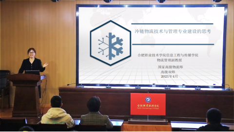 2021年10月20日16:00-17:00由信息工程与传媒学院信息技术教研室于蕾副教授主讲的《冷链物流技术与管理专业建设的思考》学术讲座在合肥职业技术学院汇心湖校区如期举行。此次讲座参会人员有2021级智能物流信息技术专业1、2班在校生82人和青年教师李锐、高淑春参加。