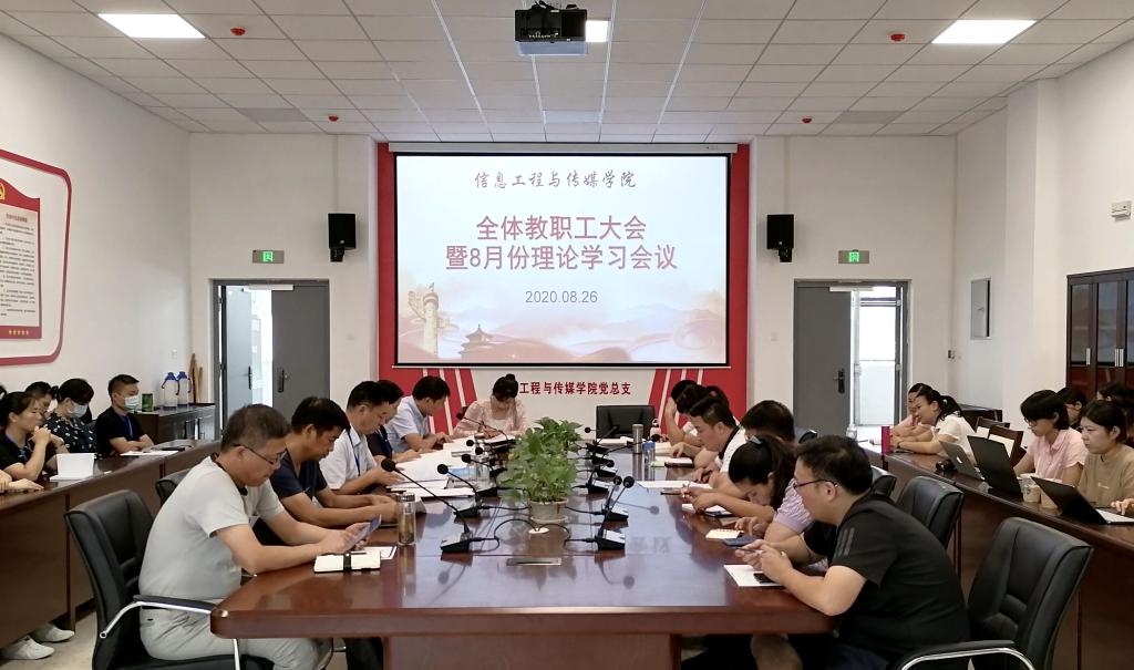 为深刻领会习近平新时代中国特色社会主义思想的精髓要义,践行立德树人的育人理念,8月27日下午2点在信息楼103会议室,今年会召开全体教职工大会暨八月份理论学习,会议由院党总支书记李红雨主持,全体教职工参加会议。