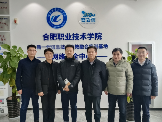 王程辉一行首先参观了网络安全产业学院,随后在网安会议室召开了校企合作研讨会,学院党政领导分别对来访的客人表示热烈欢迎,介绍了学校发展历程、学院专业布局、教育教学改革、学生实习就业和产业学院建设背景及建设成果。双方就如何转变行业经验为教学资源、构建网络完全人才培养体系、夯实产学研长效机制、打造校企合作班级、输送优秀人才支撑合肥市网络安全产业发展等方面开展探讨。
