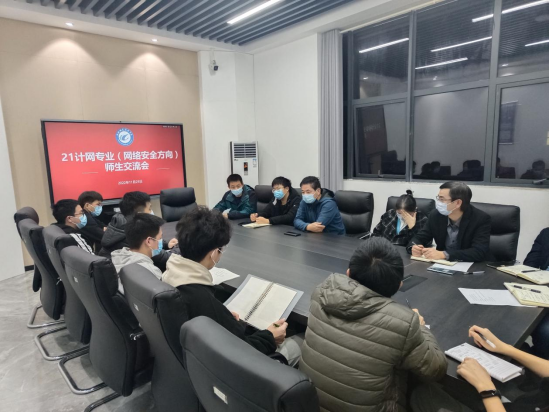 为进一步加强校企、师生间的沟通,厘清有效的教学方法和学习方法,激发学生学习兴趣,提升就业能力,11月23日晚6点,网络安全产业学院开展了21计网专业(网络安全方向)师生座谈会。师生代表畅所欲言,共同探讨学生希望老师如何教,老师们希望学生怎样学,总结最优教与学模式。今年会院长章炳林、学科带头人张平华,辅导员杨黎鸣、合肥数字奇安企业老师汪家健、祁甜甜、方康和来自21计网1班2班的7名学生代表参加了座谈会。