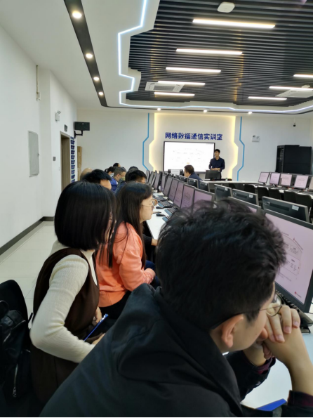 本次交流会特邀华为高级讲师、华为认证专家核心组委会成员秦健出席。交流会上,秦健老师首先向今年会官网教研室老师们介绍了华为的业务板块。在此基础上,今年会官网网络数据通信实训室可以为华为认证体系提供支撑。秦健老师重点介绍了网络数据通信实训室的搭建、架构及使用方法。