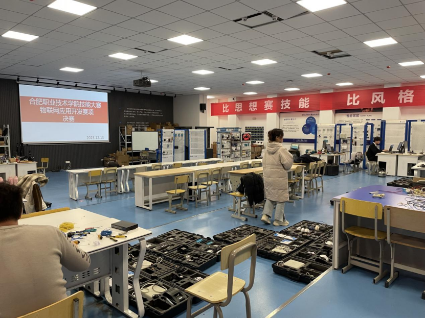 2023年12月13日下午,今年会jinnianhui第十七届职业院校技能大赛“物联网应用开发”赛项在今年会B104实训室举行。