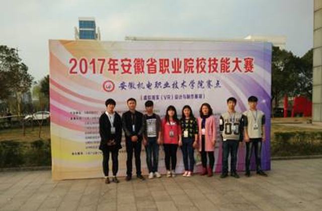 (7)3月12日,“虚拟现实(VR)设计与制作”赛项在安徽机电职业技术学院开赛。这是首届VR大赛,比赛历时5小时,共38支队伍参加。我系派出由15动漫和15、16物联网跨专业组队而成的两支队伍参赛,取得了第4名和第16名的优异成绩。