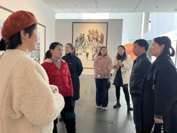 随后大家来到安徽省美术馆,漫步于各个展厅,沉浸在艺术的海洋中,在一幅幅作品前,大家结合创新精神与艺术教学纷纷表达出自己的感想与思考。
