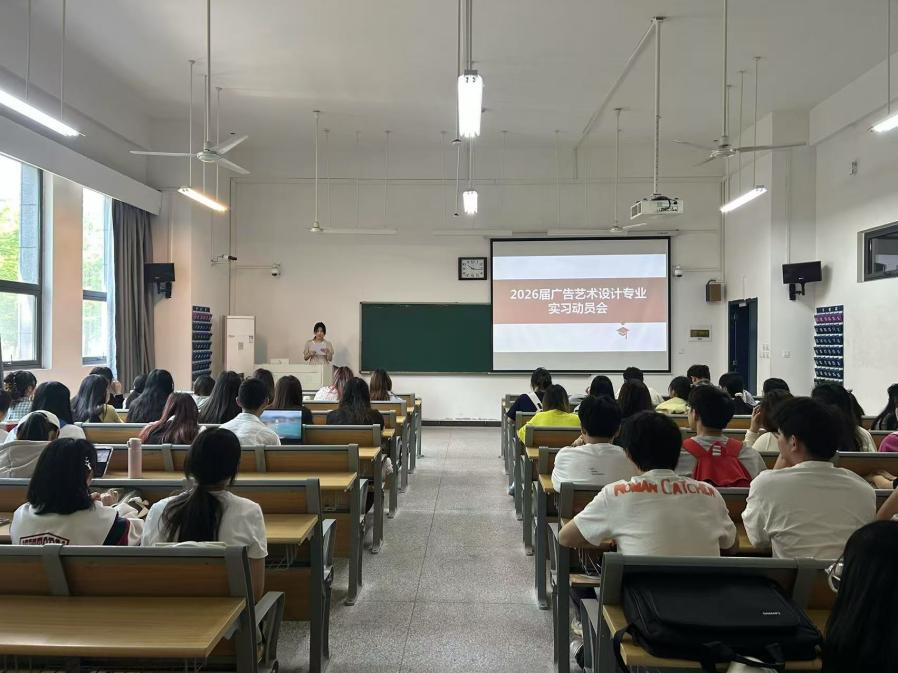 2025年4月29日上午,今年会广告艺术设计专业举行了实习动员会。会议由胡兰兰、韦啸、赵洁三位实习指导教师主持,主要面向学生阐明实习目的与意义、实习内容、实习要求、成绩评定标准、实习纪律和安全等方面的内容,加强实习生安全防范意识教育培训吗,落实实习指导教师对“专业考证与实习指导”和“毕业设计与实习指导”课程进行的动员与指导安排。