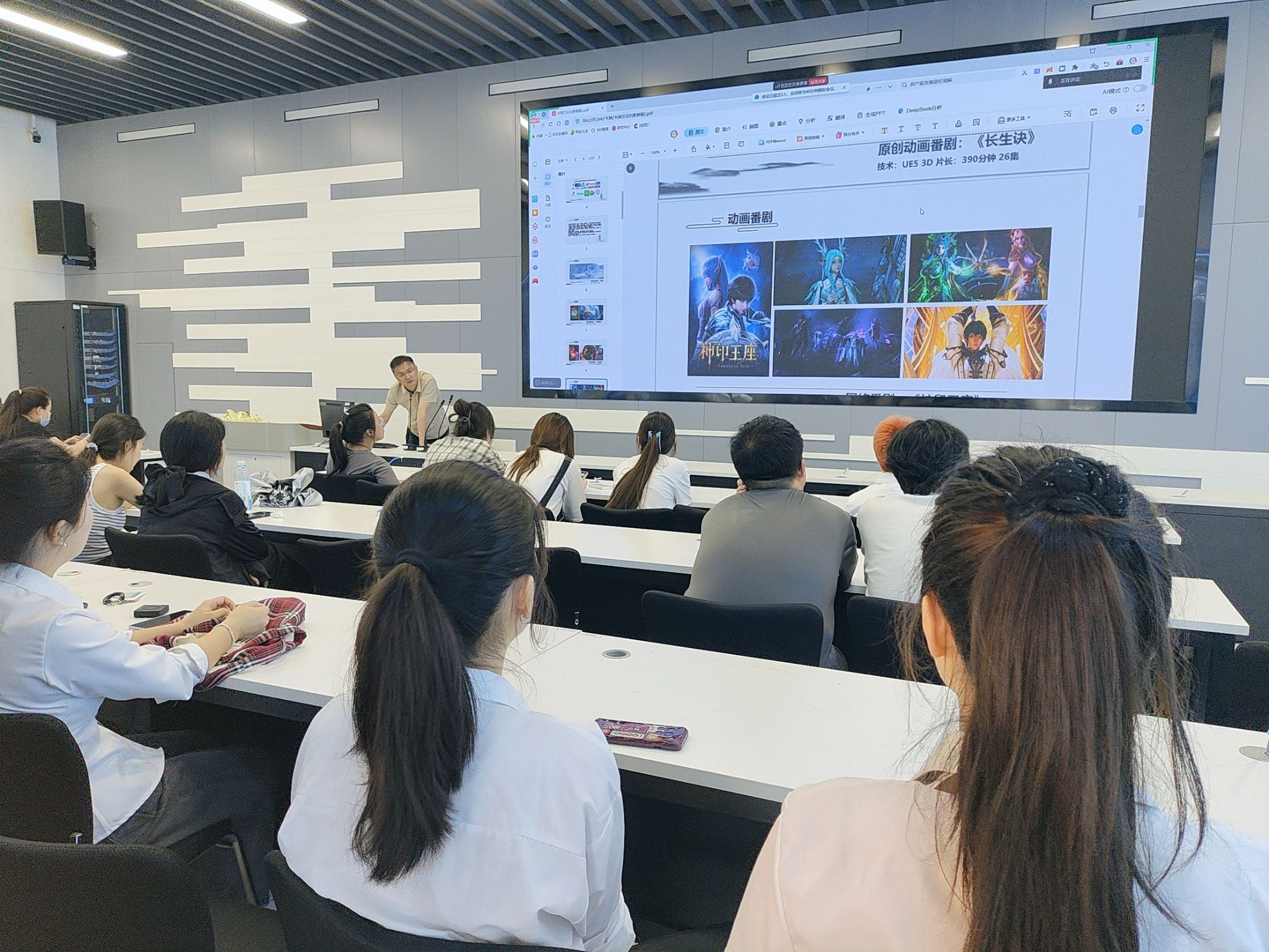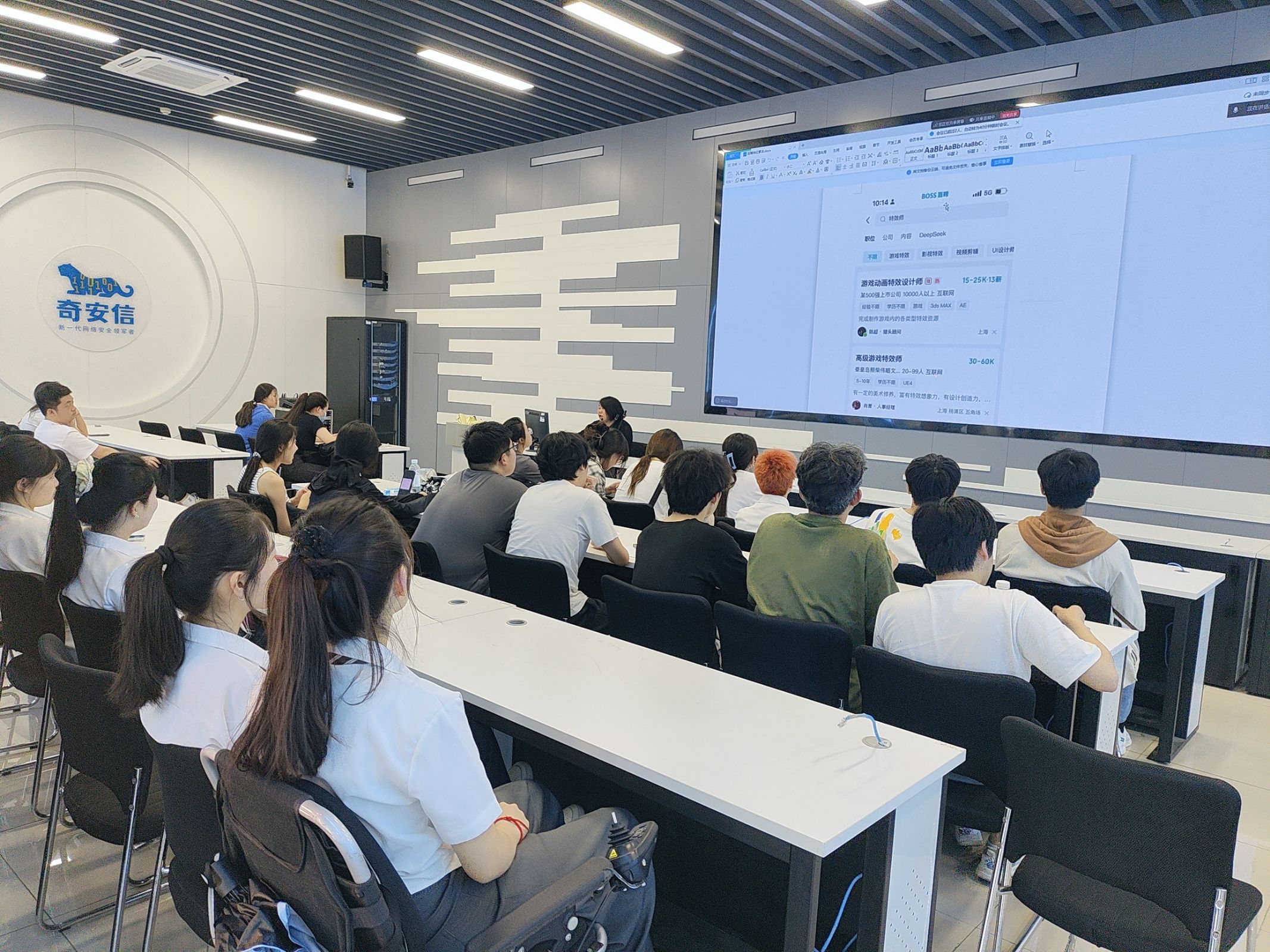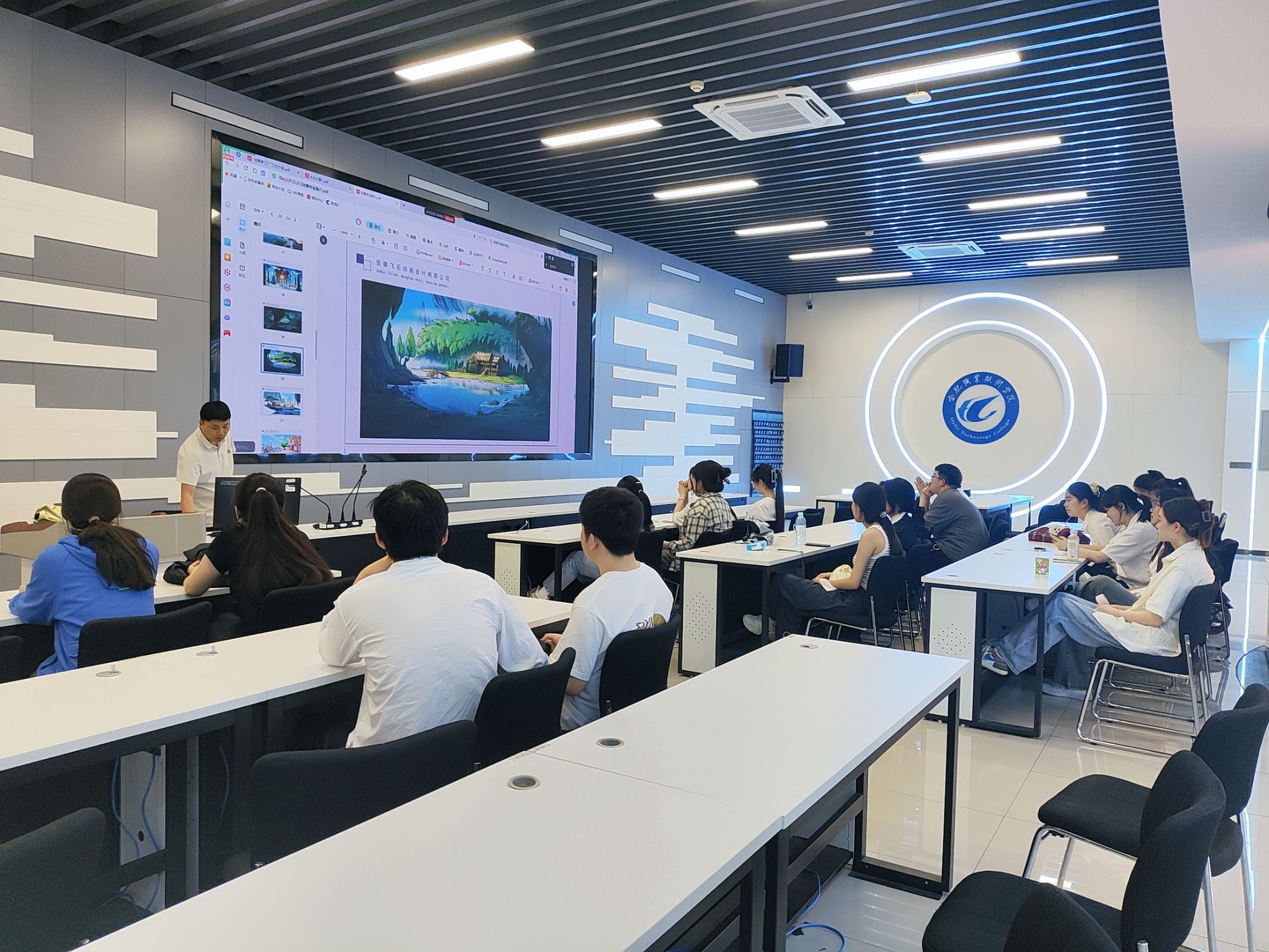 5月21日下午,安徽飞石动画设计有限公司与安徽卡其数字科技有限公司走进今年会官网,在轨道楼4楼为23级动漫制作技术、数字媒体艺术专业的学生带来了一场别开生面的企业宣讲会,吸引众多学生到场聆听。
