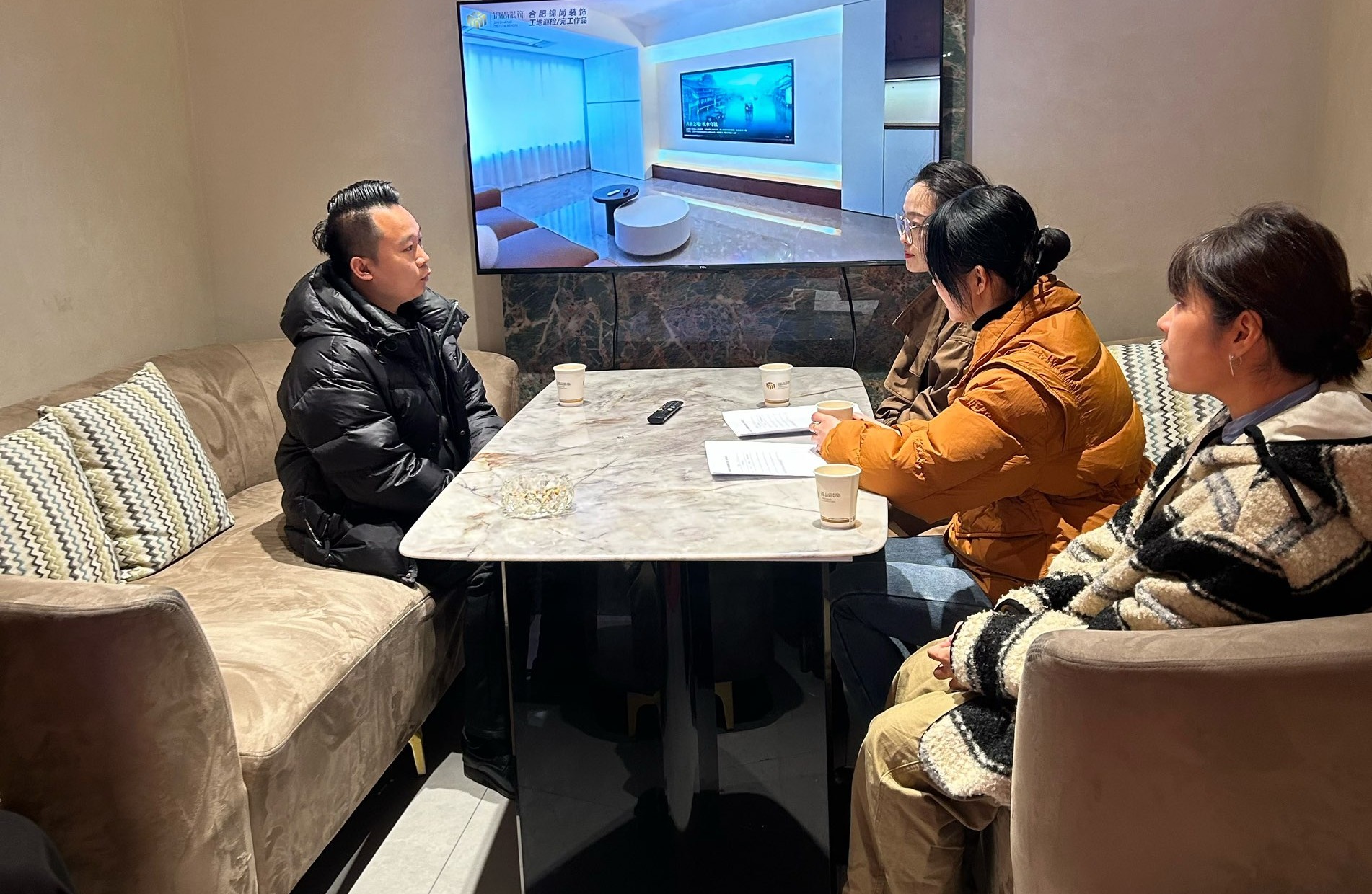 交流环节中,校企双方围绕实习生职业发展路径、薪酬体系等问题进行了探讨,锦尚装饰负责人表示计划下一步与数媒教研室下属各专业展开深度合作。