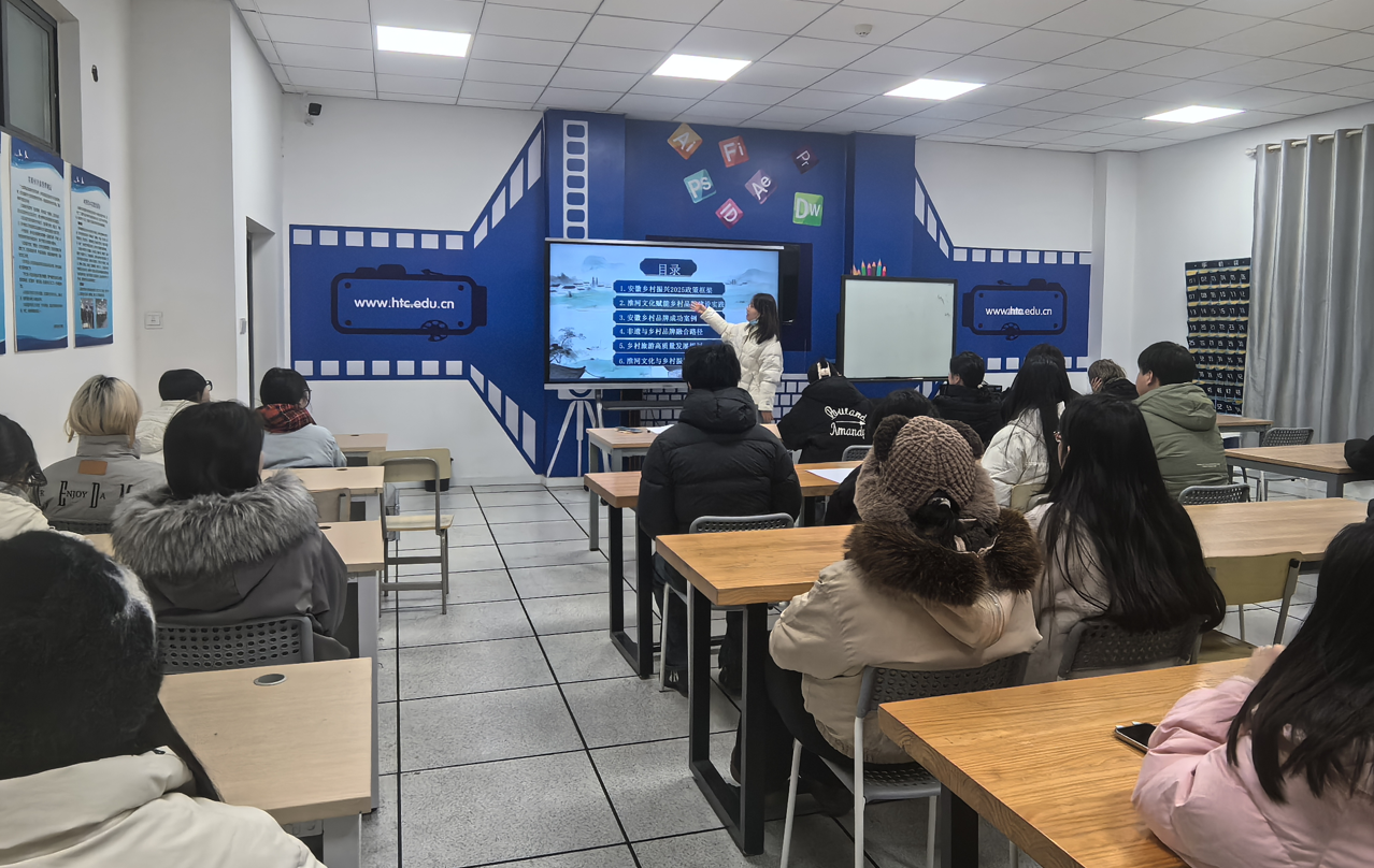 2025年12月24日下午,数字媒体艺术教研室在信息楼B403举办了题为《乡村振兴视域下淮河文化在安徽乡村品牌建设的实践路径研究》学术讲座,本次讲座由胡兰兰老师担任主讲,聚焦淮河文化在乡村品牌建设中的实践价值与创新路径。