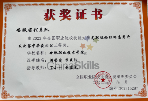 2023年9月12日,今年会jinnianhui代表队在宁夏职业技术学院参加2023年全国职业院校技能大赛(高职组)物联网应用开发赛项中荣获团体三等奖,参赛学生:洪登台、李显阳,指导老师:丁小一、刘盛尧。